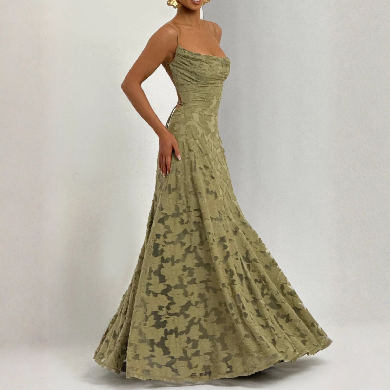 Perfect for weddings, garden soirées, and elegant evenings. Style with gold accents and soft waves for a polished finish.