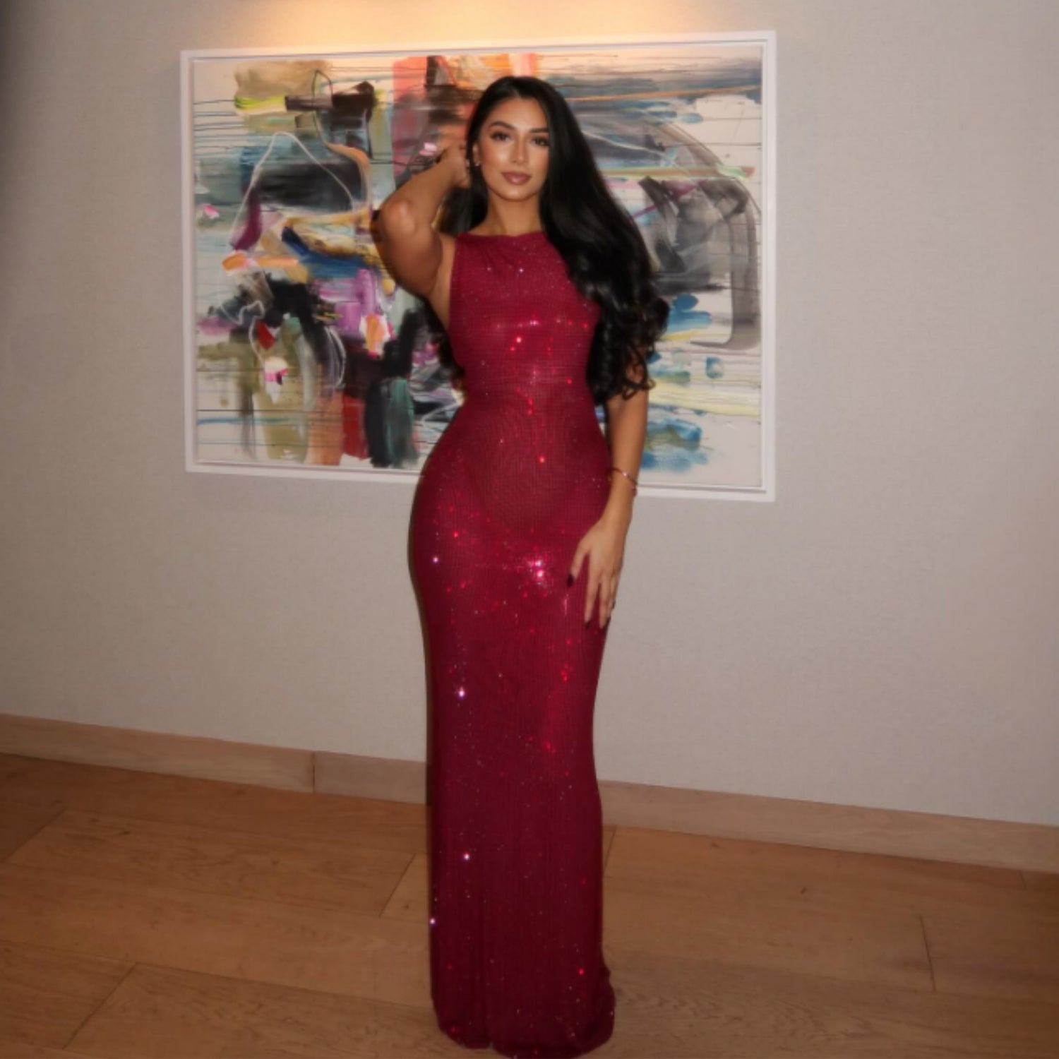 Noctra skims the body in a sleek, sculpted silhouette. The boat neckline balances elegance with edge, while the low underarm cut adds a subtle, contemporary reveal. Lined for comfort, the bodycon fit elongates the frame, finished with a discreet back leg opening.